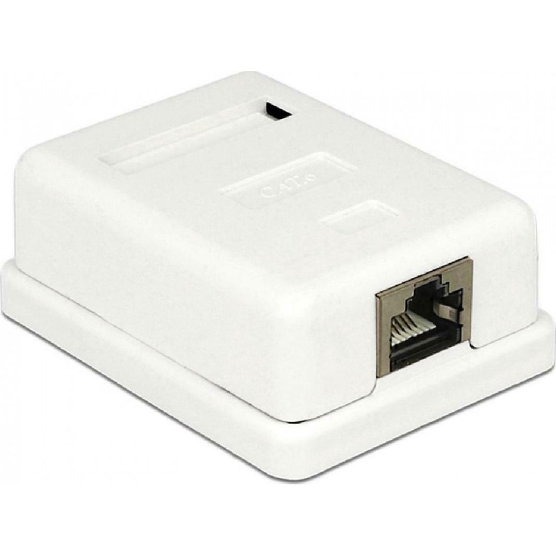Εξωτερική πρίζα δικτύου της Powertech, μονή με υποδοχή RJ45 τύπου Cat6 σε λευκό χρώμα. Αποτελεί τον πιο κοινό τύπο πρίζας για σύνδεση καλωδίων ethernet καθώς έχει 8 καλώδια σε αντίθεση με τις πρίζες RJ11 που διαθέτουν 4, για τον λόγο αυτό ένα καλώδιο RJ45 δε γίνεται να συνδεθεί σε μια πρίζα RJ11, αλλά το αντίθετο είναι δυνατό. Eίναι συμβατή με καλώδια ethernet τύπου Cat6, αυτός ο τύπος καλωδίου έχει τη δυνατότητα να μεταφέρει δεδομένα πιο γρήγορα από ένα καλώδιο Cat5. Έτσι, μπορεί για παράδειγμα, να μεταφέρει 10GB σε 80 δευτερόλεπτα.
