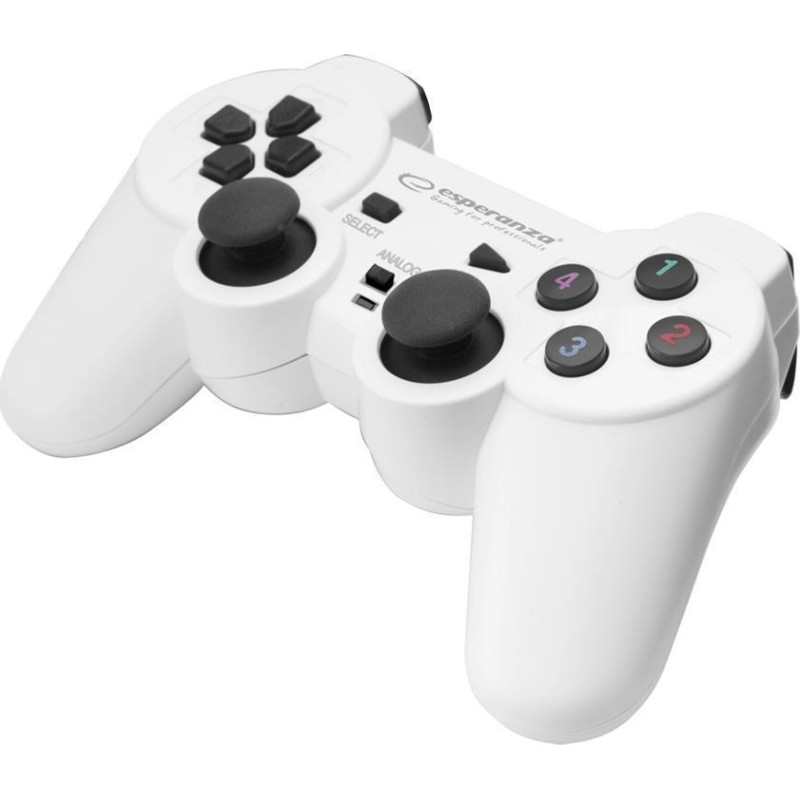 Το EG102 της Esperanza είναι ένα ενσύρματο Gamepad με παρόμοιο σχεδιασμό με το εργοστασιακό Gamepad του Playstation. Διαθέτει 2 αναλογικούς μοχλούς για να εκτελεί την κάθε σας κίνηση με υψηλή απόκριση, 10 κουμπιά δράσης, 2 modes (αναλογικό και ψηφιακό) κι είναι συμβατό με PC και PS3.
